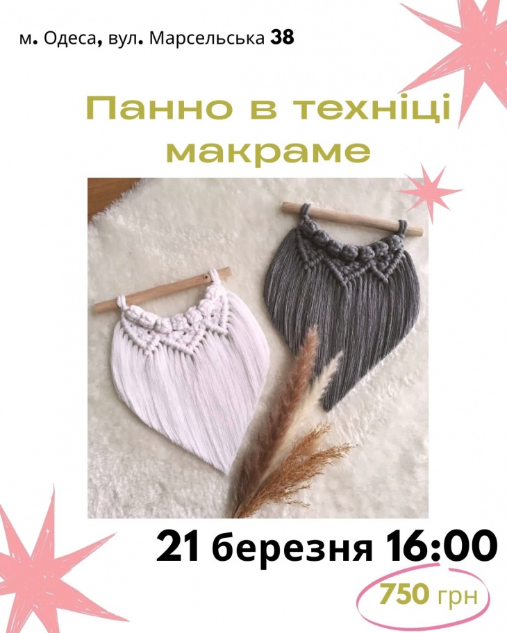 - 16:00 – Панно в технике макраме Осваиваем базовые узлы и создаем интерьерное панно в нейтральных оттенках – стильный акцент для пространства.