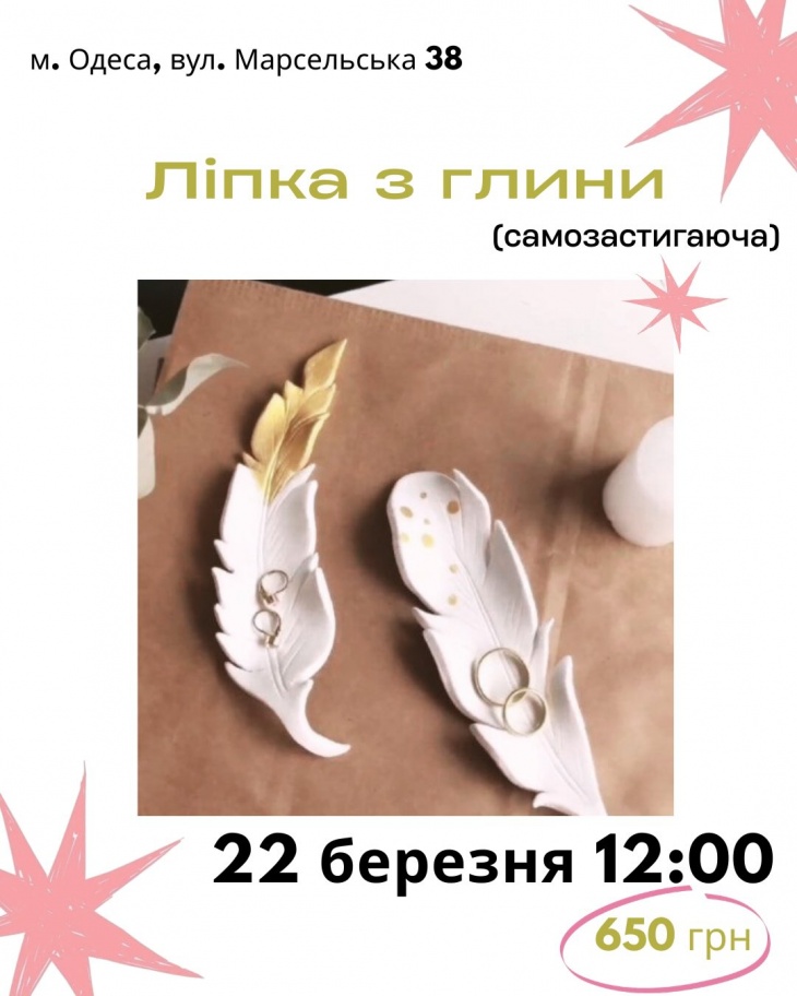 - 14:00 — Украшение из полимерной глины Создаем яркий весенний аксессуар, который украсит вашу обыденность: моделируем форму, добавляем блеск и собираем готовое украшение.