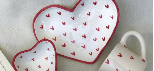 Ліпимо до Дня Закоханих виріб з глини та розфарбовуємо ангобами.
