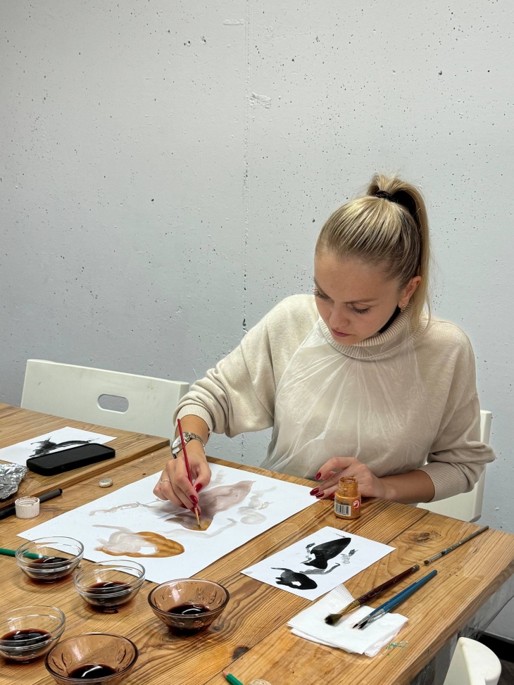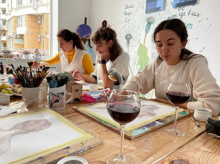 Каждый участник заберет домой не только готовую работу, написанную вином, но и узнает, кто же придумал эту технику, когда она появилась и при каких обстоятельствах.