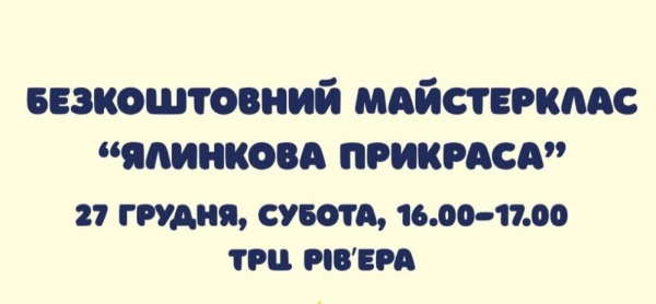 Бесплатный мастер класс «Елочное украшение» от детской комнаты с няня сервисом Tommy Life состоится в субботу, 27 декабря, в 16.00-17.00 у фудкорта в ТРЦ Ривьера!