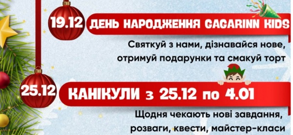 - 19.12 - День рождения Gagarinn Kids. Празднуем вместе, узнаем новое, получаем подарки и вкушаем торт.