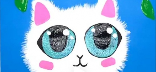 Створюємо справжню пухнасту магію на полотні. Запрошуємо діток намалювати наймилішого білого котика з великими виразними очима та ніжним рожевим бантиком.