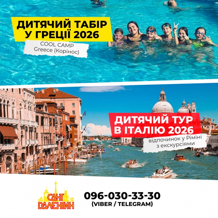 Туроператор "Сант Валентин" предлагает детские лагеря за границей 2026 года и экскурсионные туры для школьников с выездом из Киева. Программы совмещают отдых на море, активные развлечения, экскурсии и развитие детей в безопасной среде под наблюдением опытных руководителей групп.