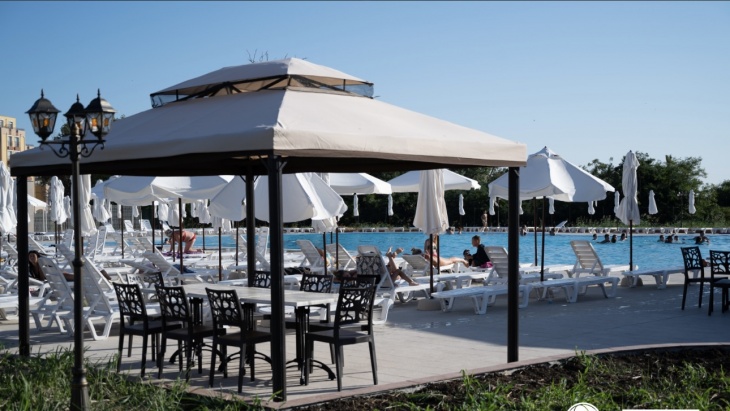 Бассейны: На территории комплекса построено два огромных бассейна. Летом 2023 года будет функционировать один бассейн площадью 1000 кв. м и переменной глубиной от 1,2 до 1,6м.