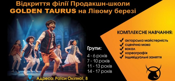 Продакшн-школа Golden Taurus объявляет об открытии нового филиала на Левом Берегу по адресу ул. Раисы Окипной, 8