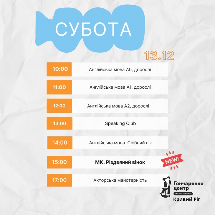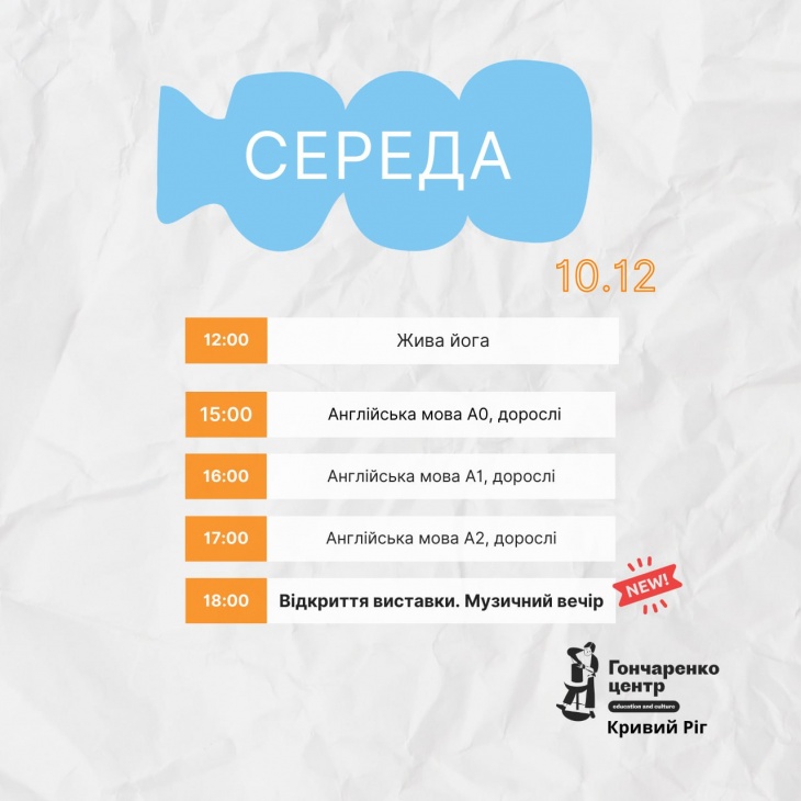 Все события и мероприятия в Гончаренко центре Кривой Рог БЕСПЛАТНЫЕ.