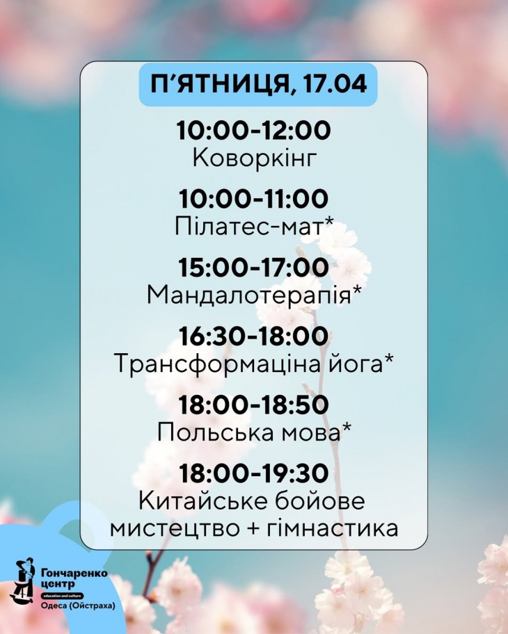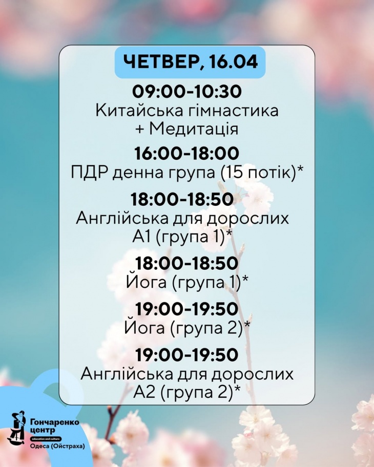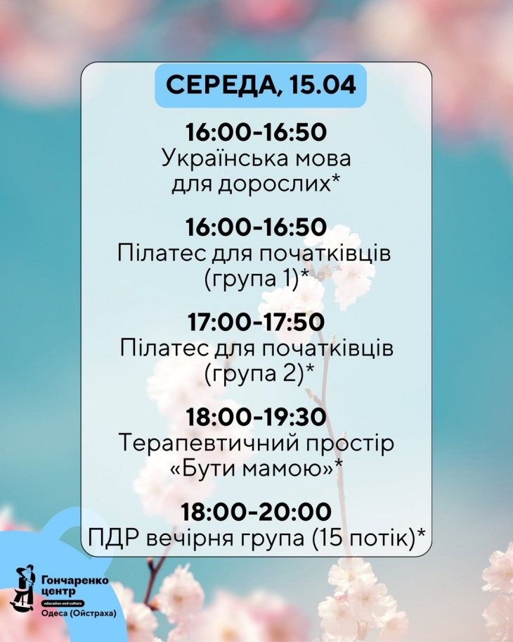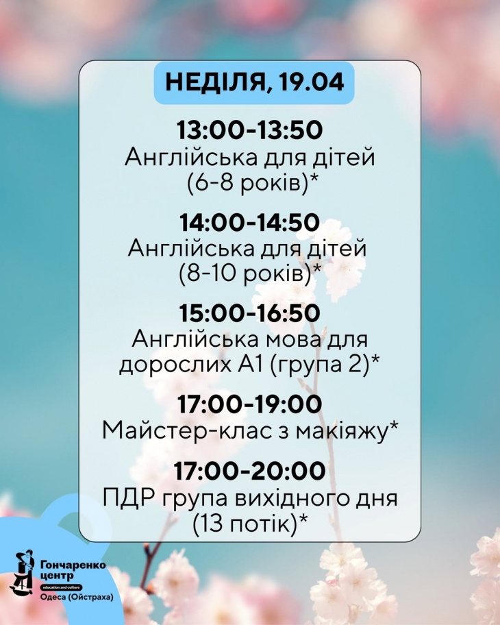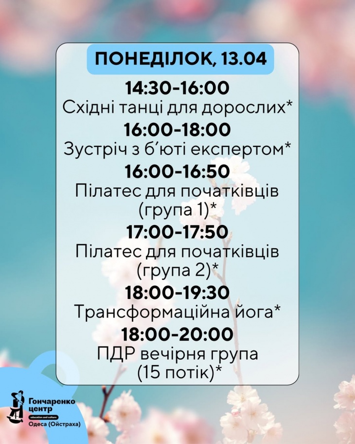 Анонсуємо новий тиждень з Гончаренко центром Одеса (Ойстраха)
