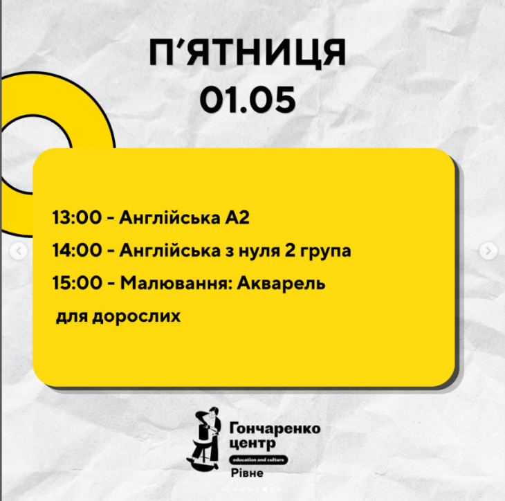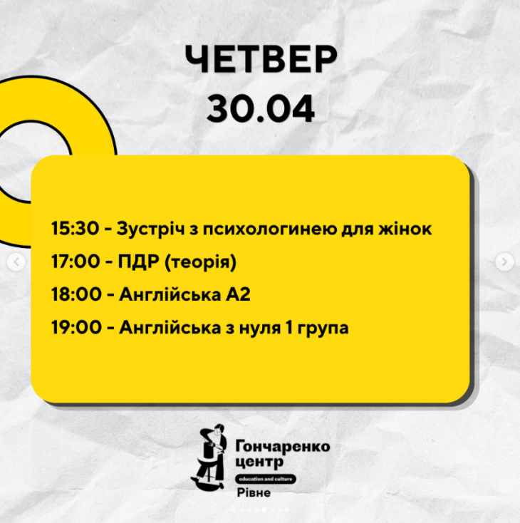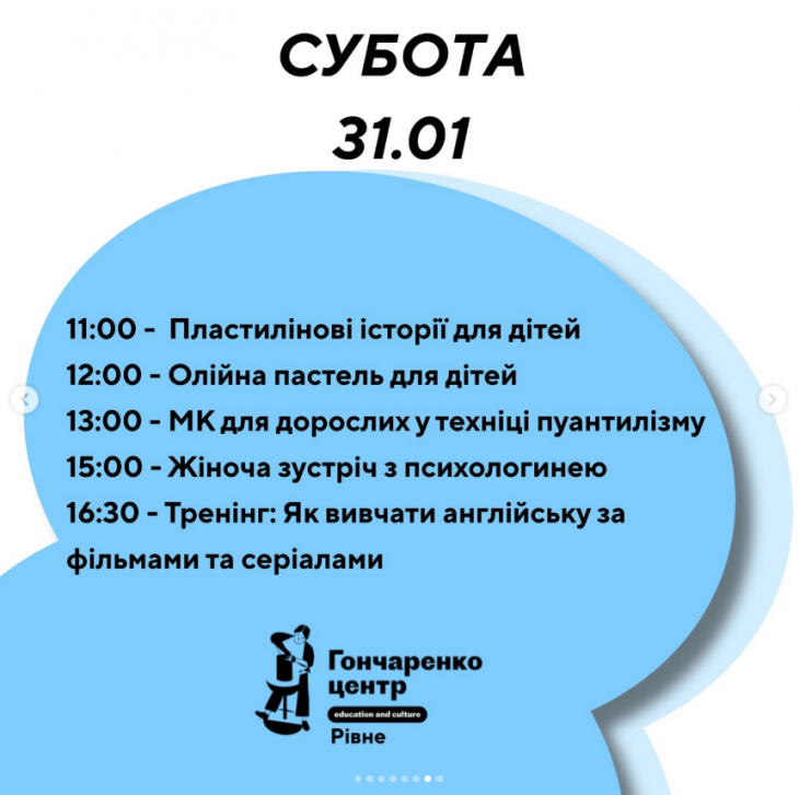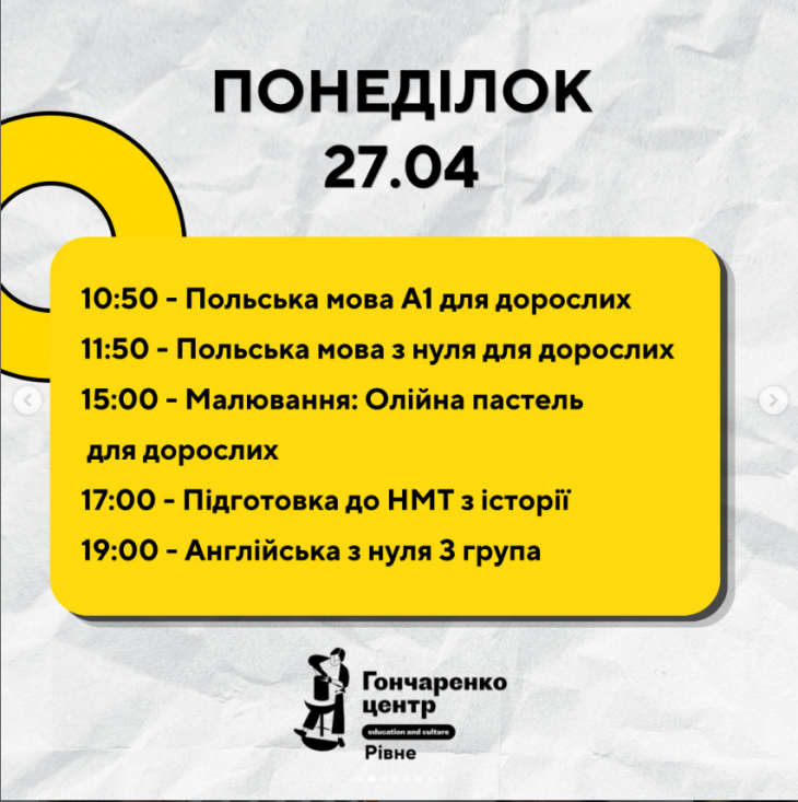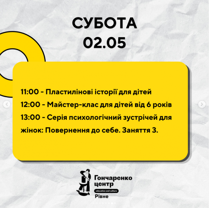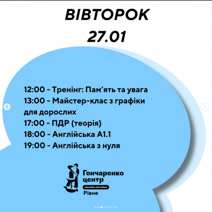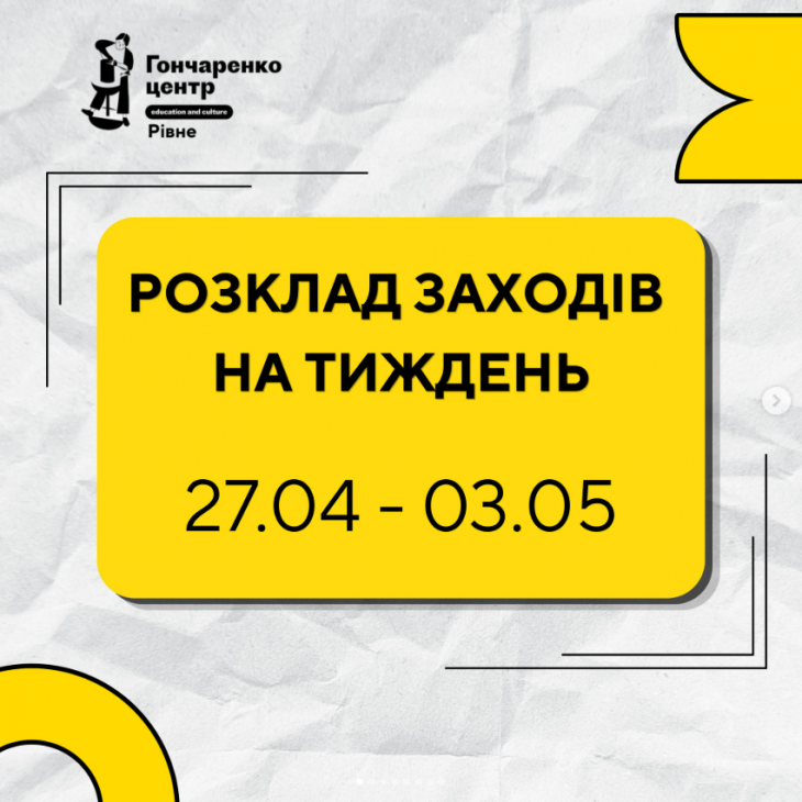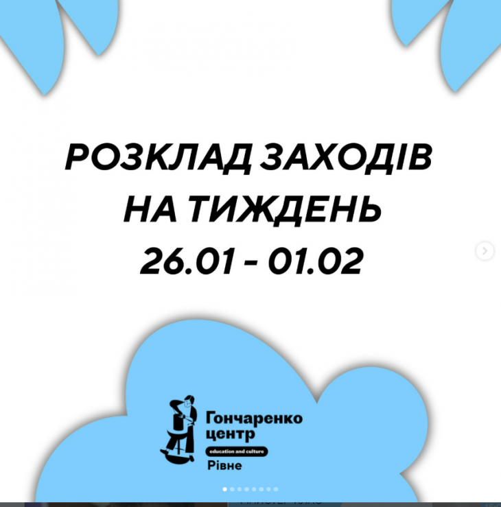 Усі заходи в Гончаренко центрі Рівне безкоштовні.