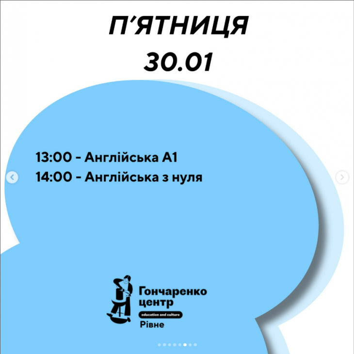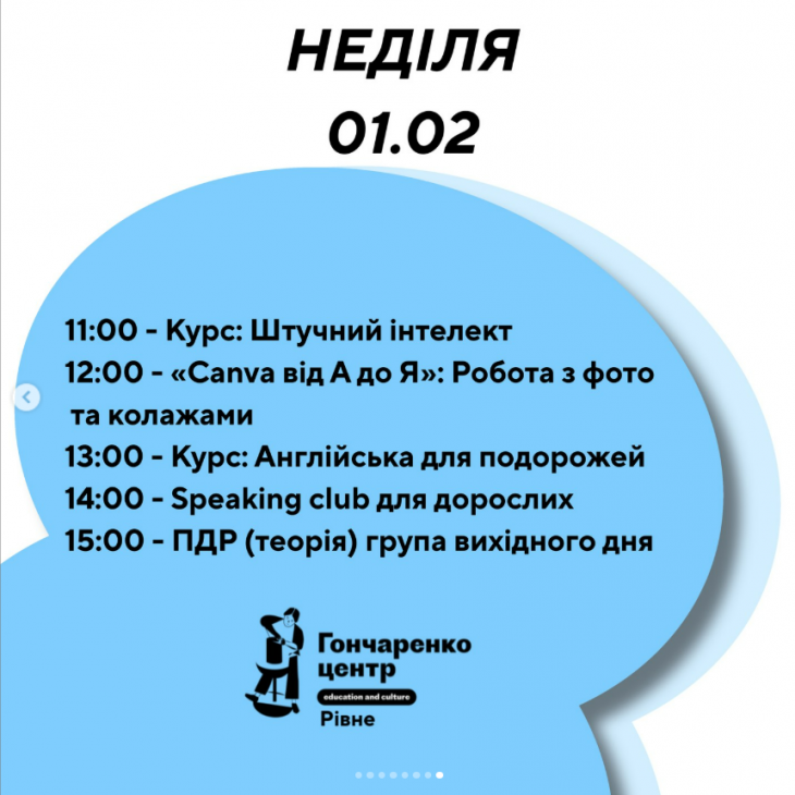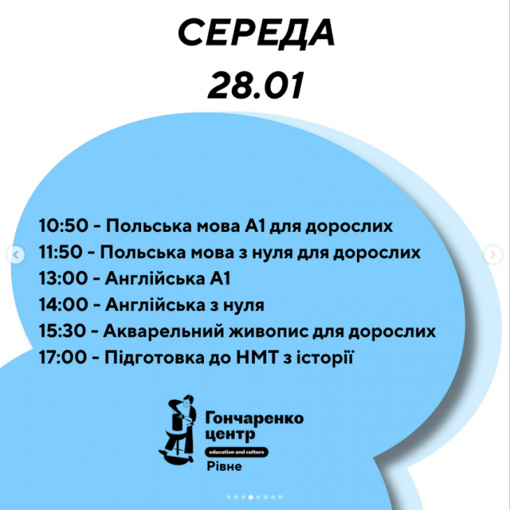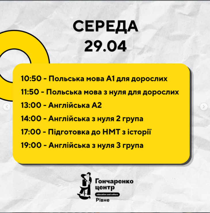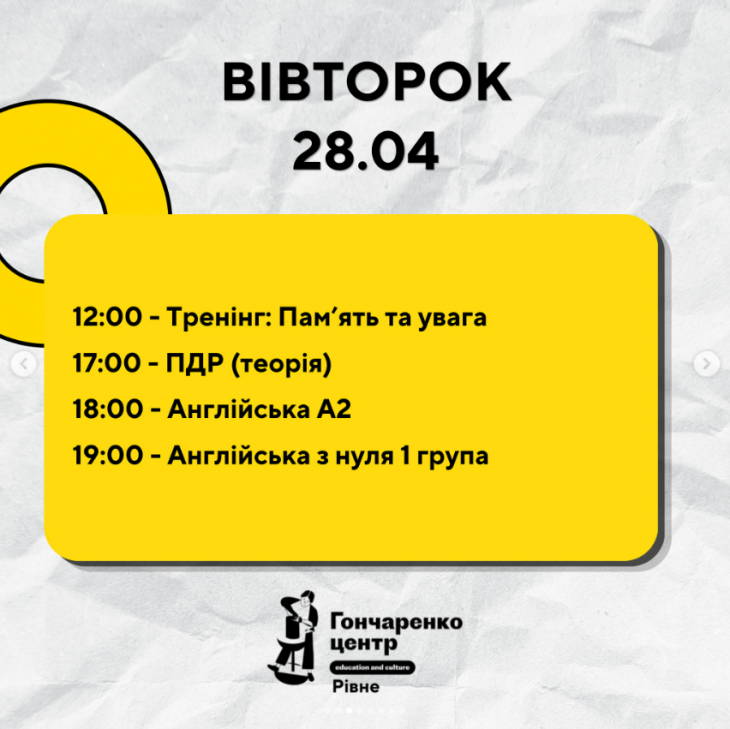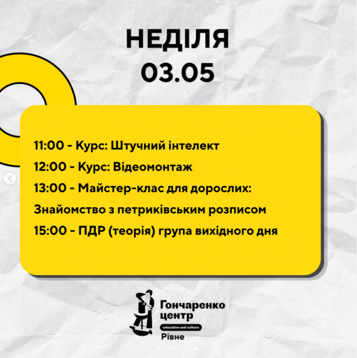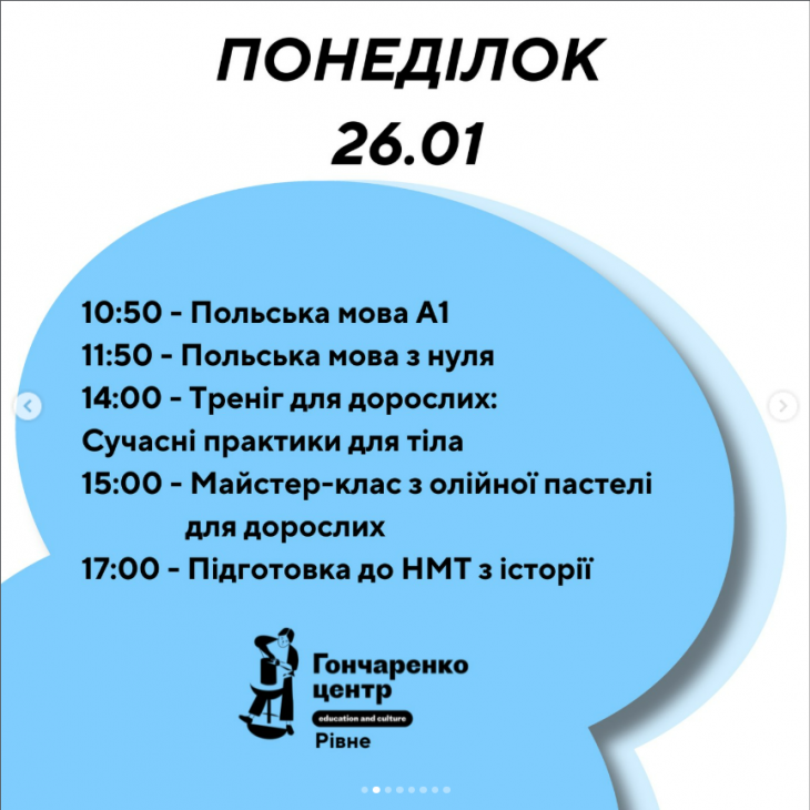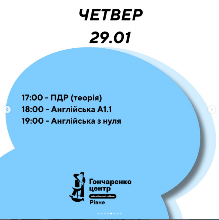 Усі заходи в Гончаренко центрі Рівне безкоштовні.