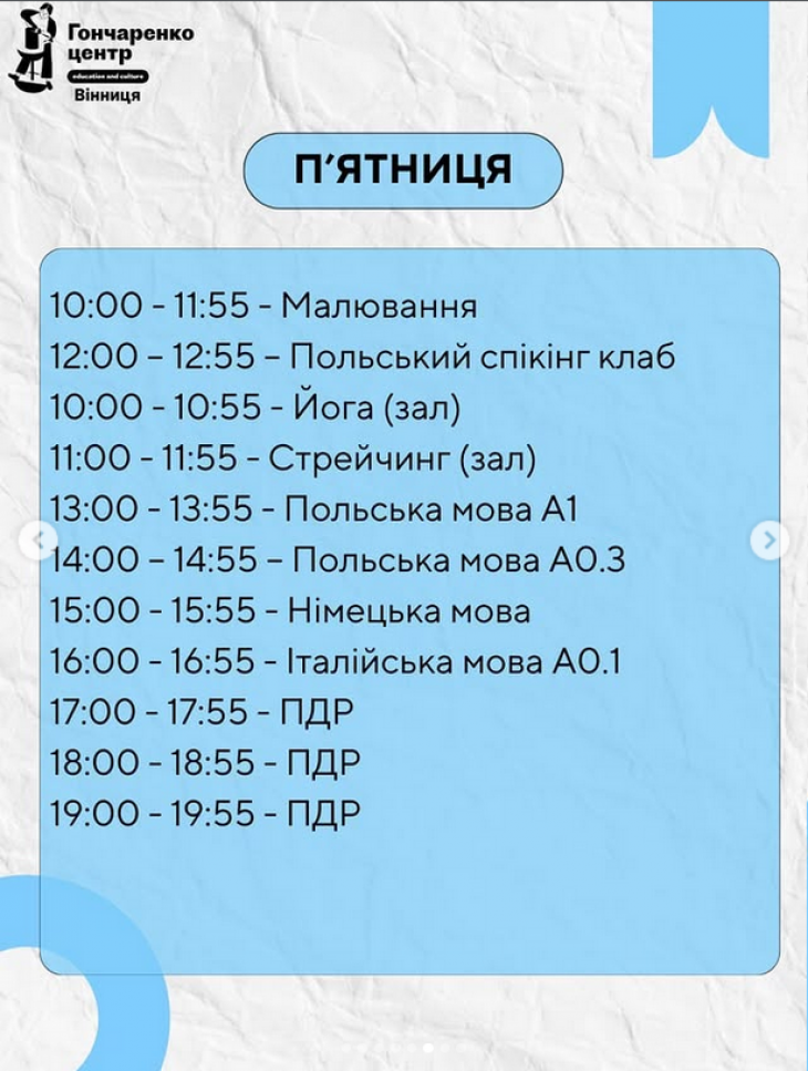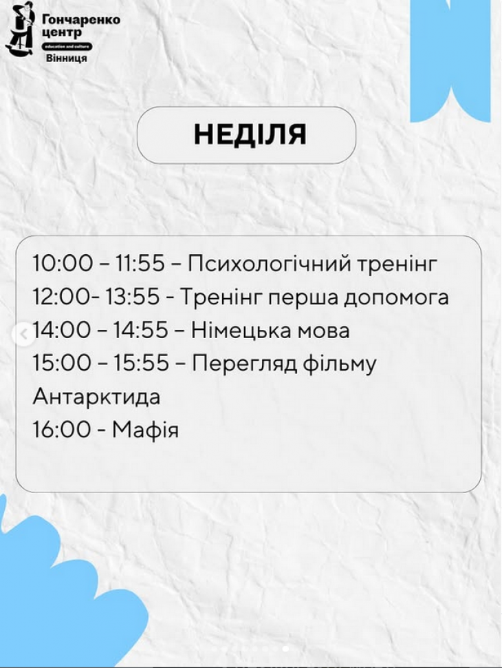 У Гончаренко Центрі Вінниця традиційно підготували для вас щось цікаве та надихаюче: