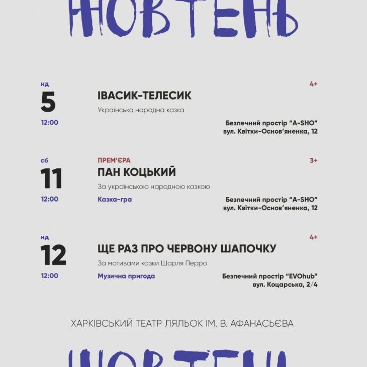 Спектакли для детей и взрослых - в Харьковском кукольном театре. Афиша