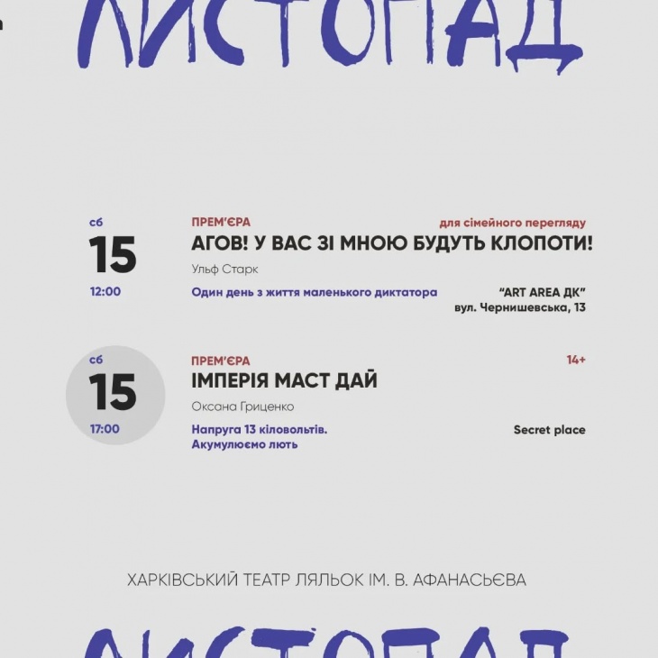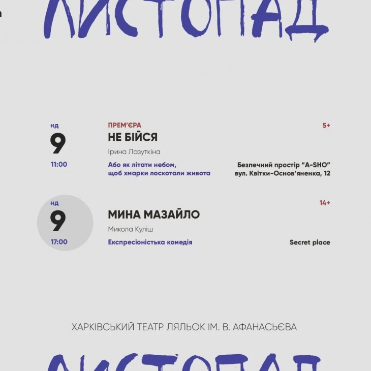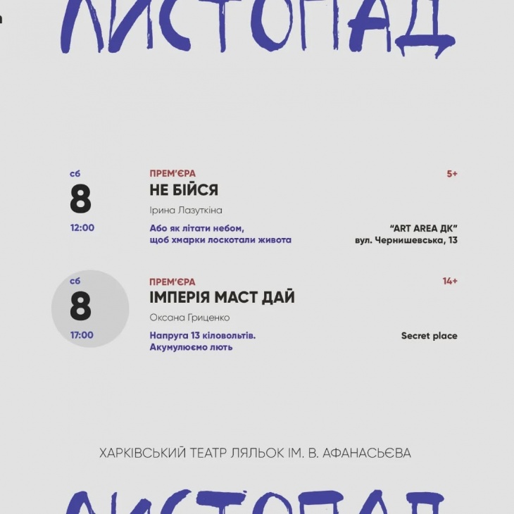 - прем'єра вистави для дітей "НЕ БІЙСЯ" за книгою Ірини Лазуткіної, що створена спільно з видавництвом @vivat_book