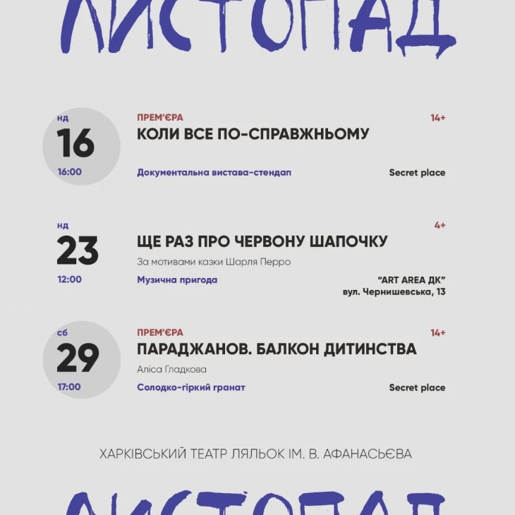 У новому сезоні наші вистави будуть проходити у таких локаціях:
