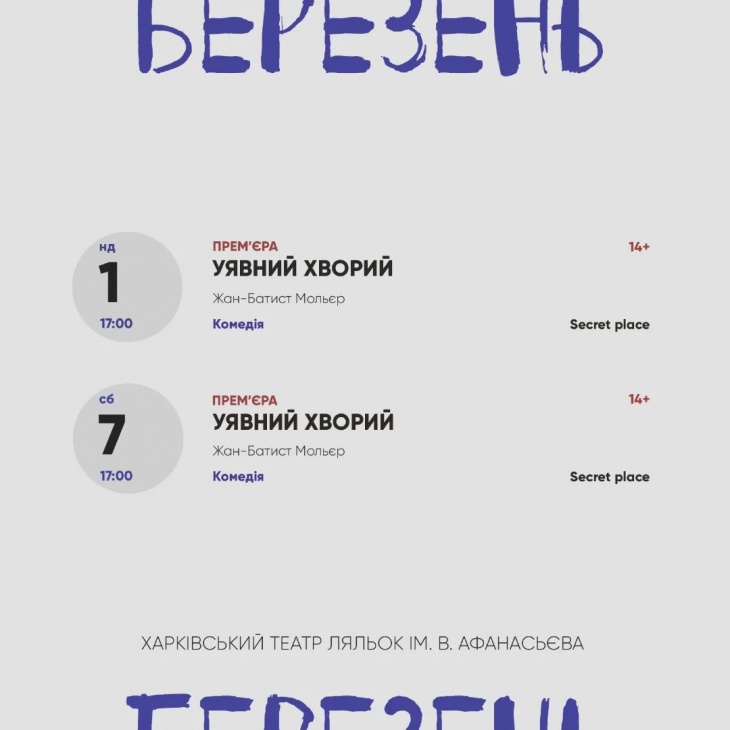 У березні ще тричі гратимемо комедію "Уявний хворий".