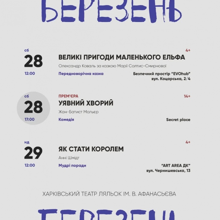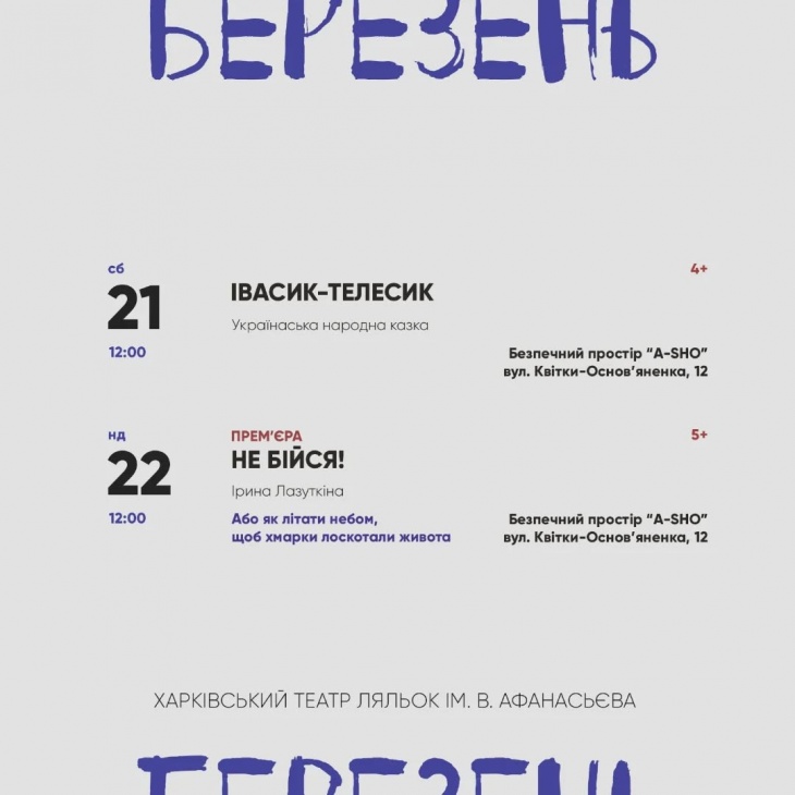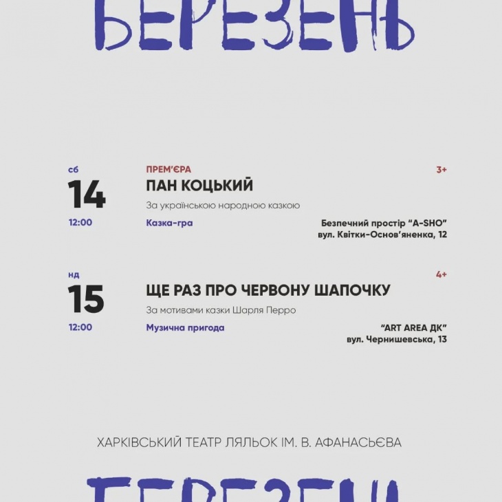 Запрошуємо до нас на спектаклі для дітей та для дорослих.