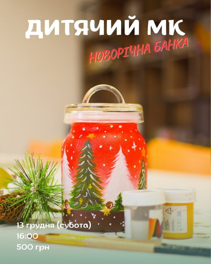 Малыши будут расписывать свою банку в новогодней тематике красками — каждый заберет домой праздничный фонарик-изделие ✨