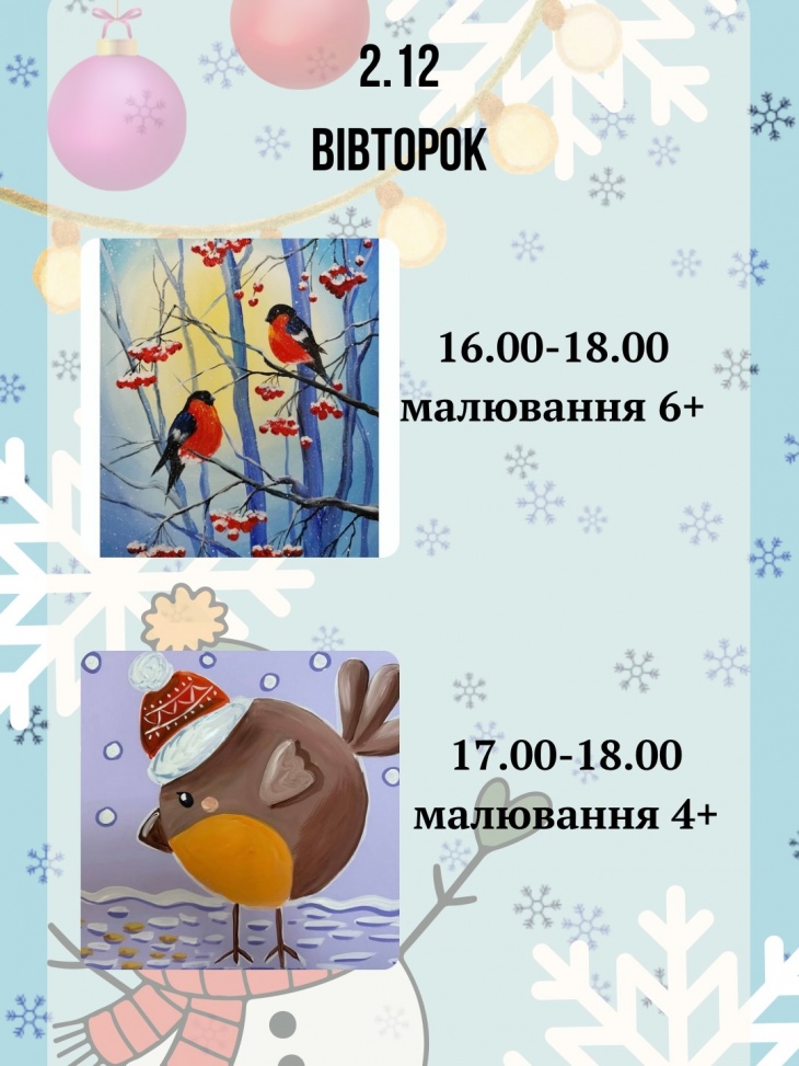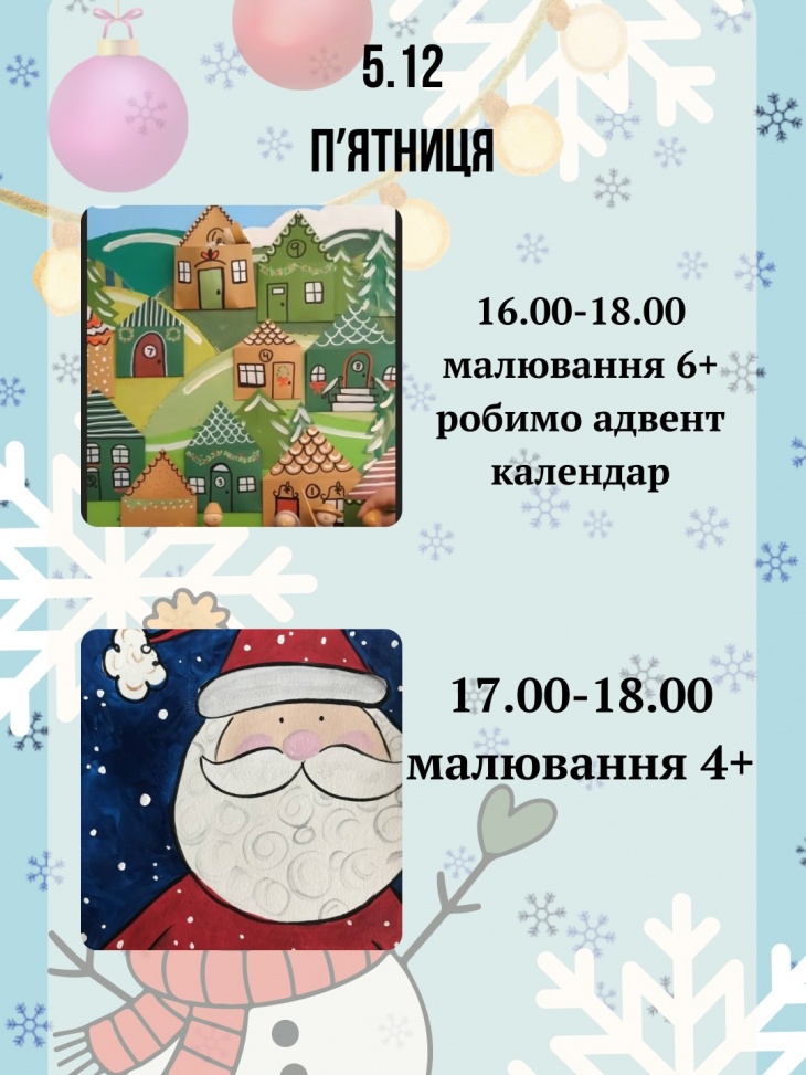 - 16:00–18:00 – Рисование 6+. Адвент календарь