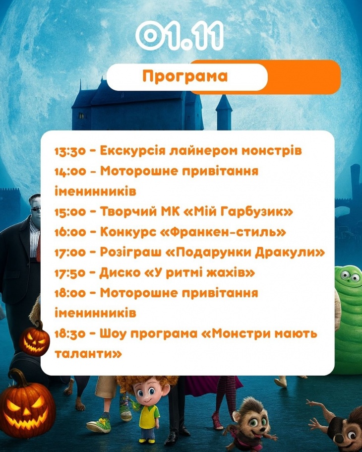 31.10 | 01.11 | 02.11 — три дні драйву, сміху й пригод у стилі «Монстри на канікулах».