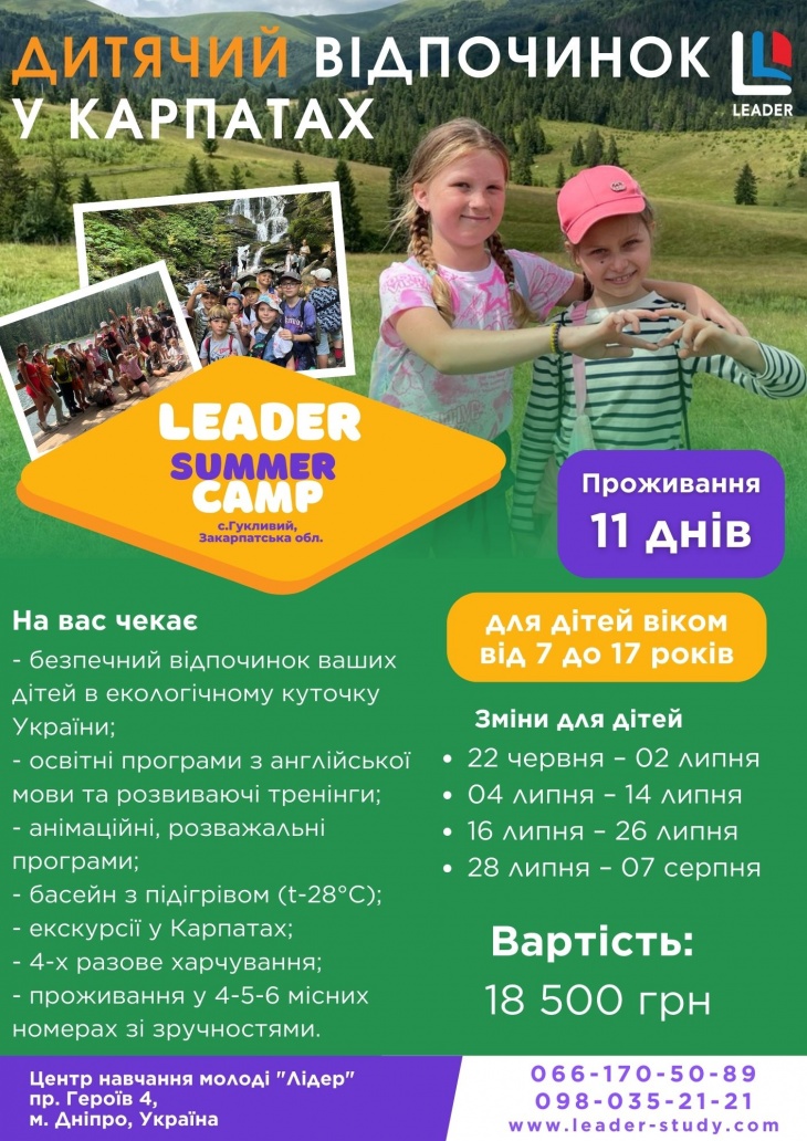 Уважаемые друзья! Мы предлагаем детский отдых LEADER CAMP в Карпатах.