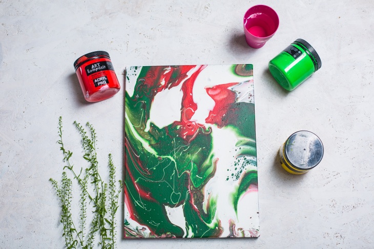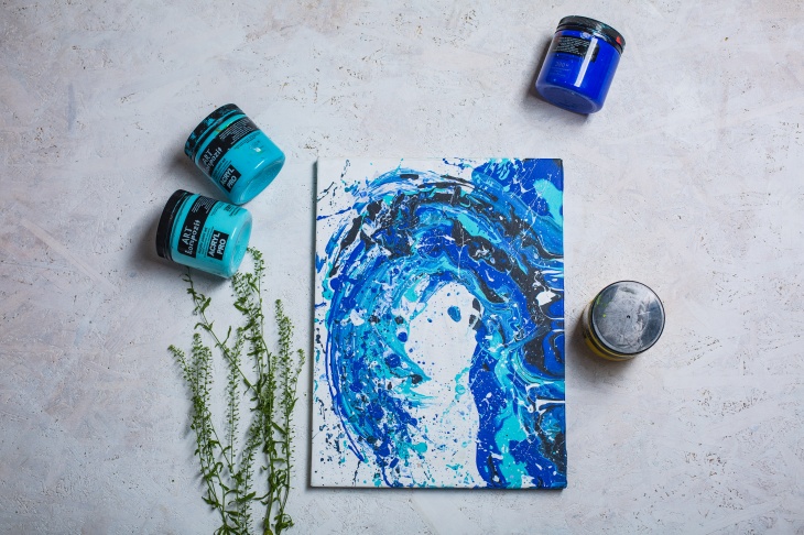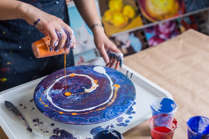 Fluid art – это новая разновидность абстрактной живописи, суть которой заключается в том, чтобы разлить акриловые краски на холсте,