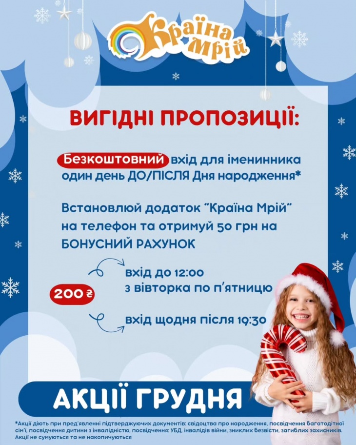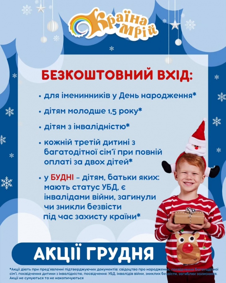 Декабрь в «Країні Мрій» — это месяц, в котором дети ждут чуда, а мы помогаем этому чуду случиться