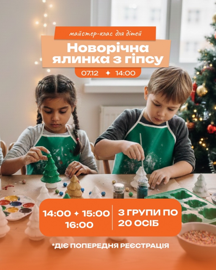 07.12 в 14:00, 15:00 и 16:00 - Мастер-класс для детей «Новогодняя елка из гипса»