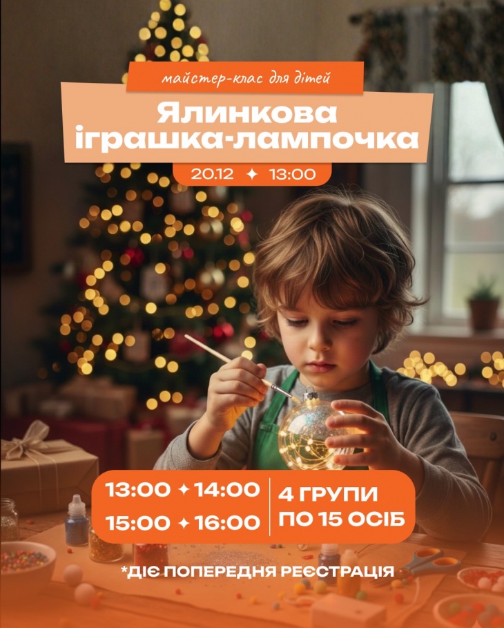 20.12 в 13:00, 14:00, 15:00 и 16:00 - Мастер-класс для детей «Елочная игрушка-лампочка»