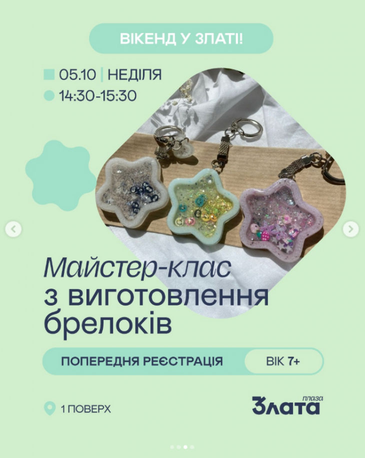 А в неділю дітлахи зможуть зробити власний брелок на майстер-класі, а дорослі - насолодитись музикою наживо!