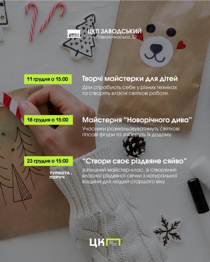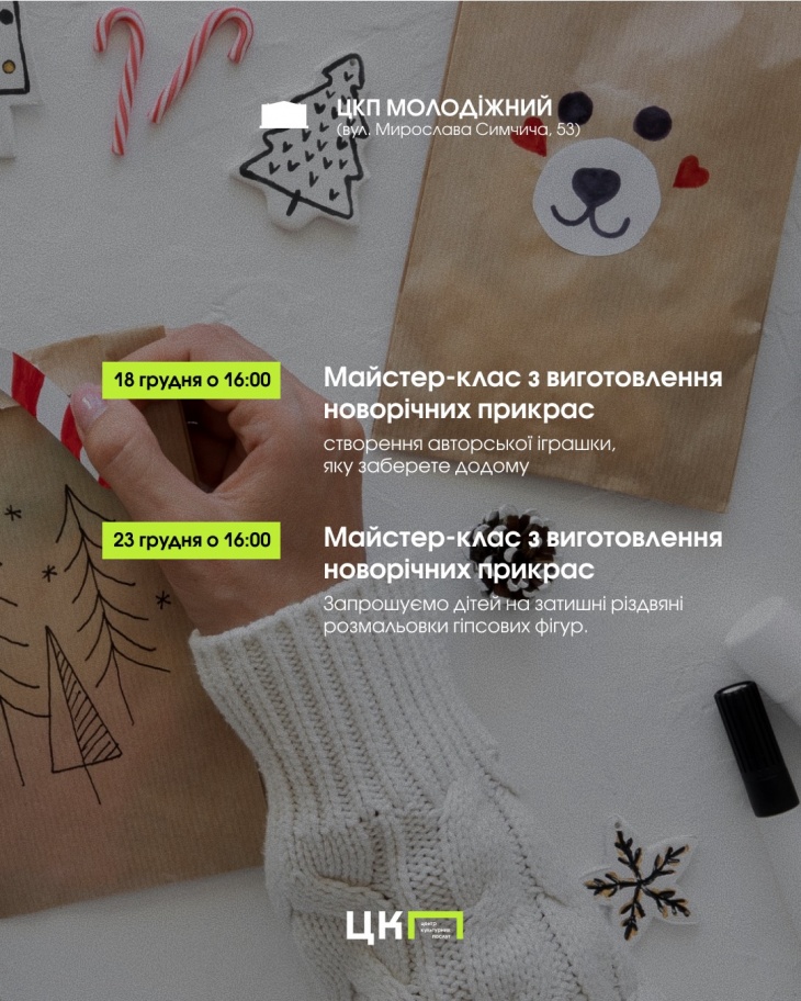 В течение декабря вас ждут уютные творческие встречи для детей и взрослых: будем делать крафтовые свечи, новогодние украшения, разнообразные фигурки и другие символы зимних праздников.