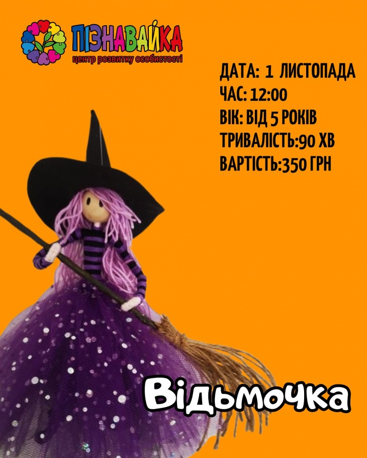 - 12:00 Мастер-класс "Ведьмочка", 5+. Продолжительность 90 мин. Стоимость - 350 грн