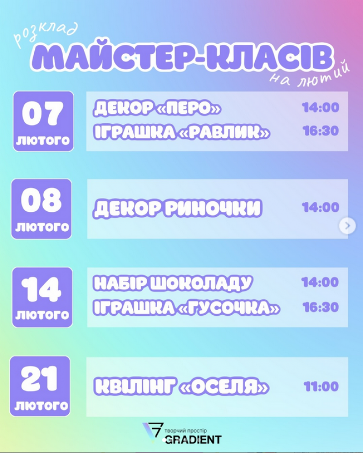 ПЛАН МАЙСТЕР КЛАСІВ НА ЛЮТИЙ у Градієнті