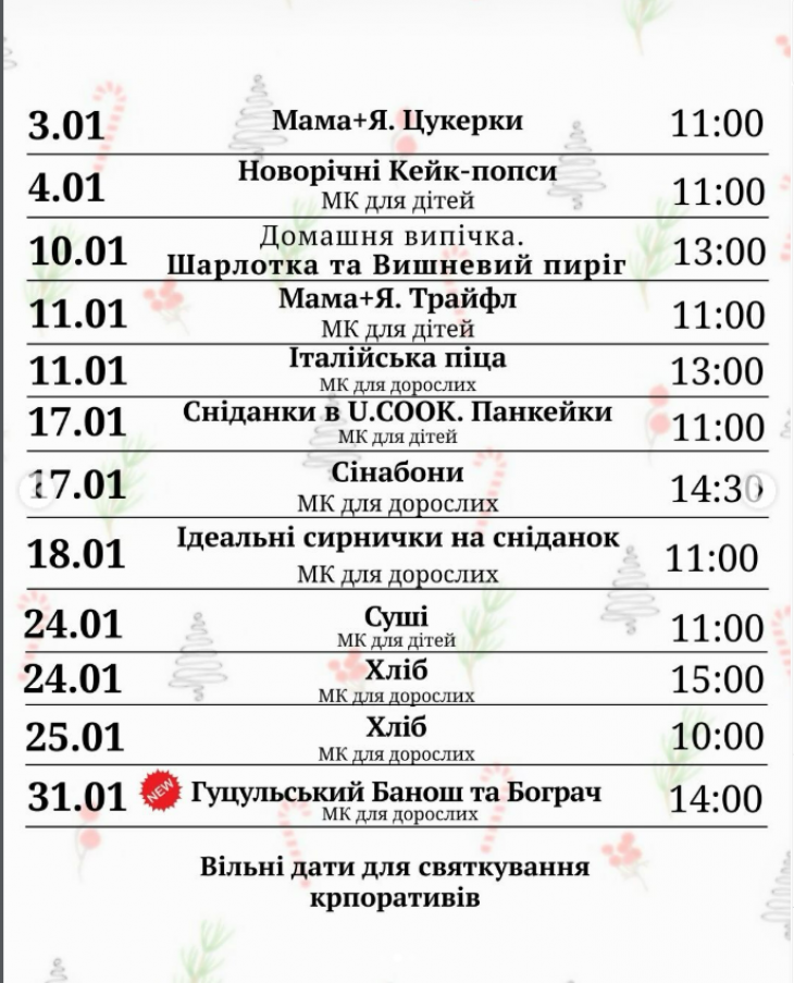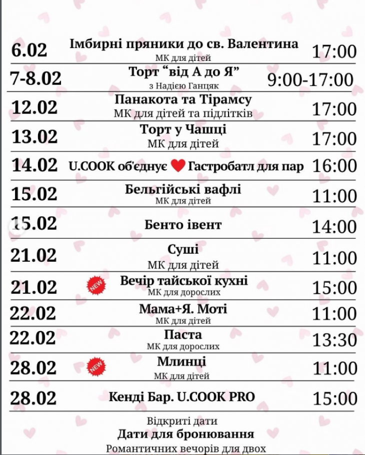 Також нагадуємо вам про відкриті дати для: