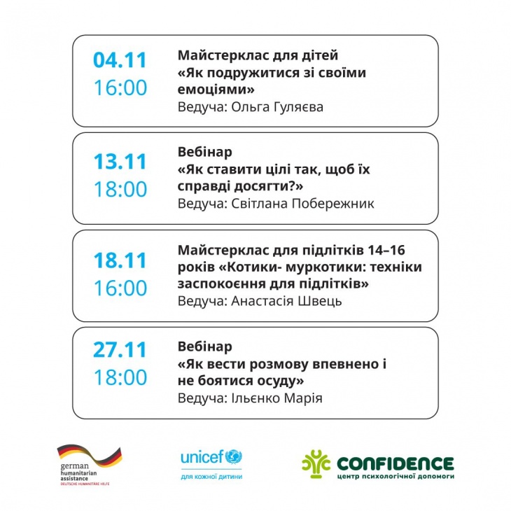 Долучитись до безоплатних онлайн-заходів можна після реєстрації за посиланням: https://confidence.net.ua/forms/online-webinar/