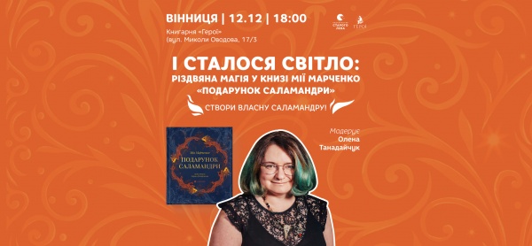 12 грудня о 18:00 «Старий Лев» запрошує до книгарні «Герої» у Вінниці (вул. Миколи Оводова, 17/3) на презентацію нової книги Мії Марченко «Подарунок Саламандри».
